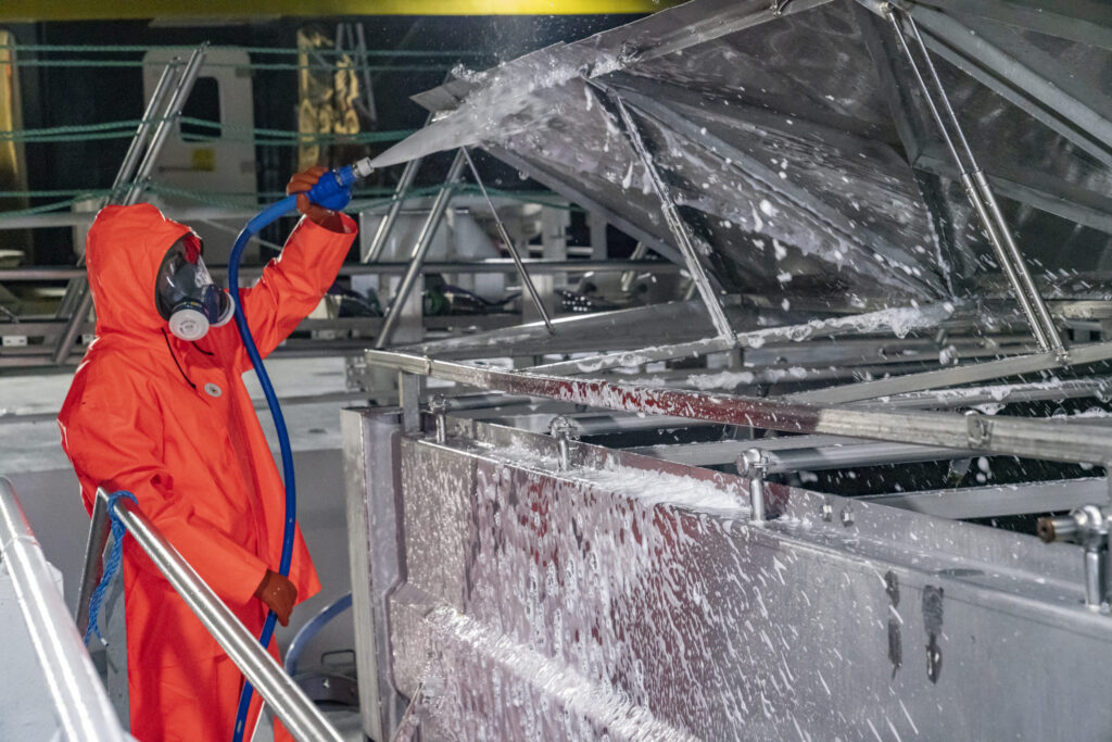 Et godt utarbeidet renholds- og kontrollregime er nødvendig for at vi skal kunne sikre mattryggheten. Båtene gjennomgår en betydelig vaske- og desinfeksjonsrutine etter hver føring av fisk – fabrikken og tilhørende utstyr blir manuelt vasket og desinfisert, mens rørsystemet om bord vaskes gjennom et såkalt “Clean In Place” system. Vi har utviklet et CIP system som bevarer kvaliteten på vasken samtidig som vasketiden holdes nede. Dette systemet er basert på erfaringer bygget over et tiår med drift av prosessbåt. Mange gode løsninger sikrer at en får drenert systemet godt mellom vaske steg og dette hever kvaliteten på vasken.
